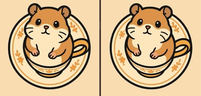Czy jesteś gotowy na kolejne wyzwanie? Przyjrzyj się uważnie dwóm zdjęciom chomika siedzącego w kubku. Na pierwszy rzut oka wyglądają identycznie, ale są między nimi 3 małe różnice. Myślisz, że jesteś w stanie znaleźć je wszystkie w 51 sekund? Spróbuj i sprawdź swoją ostrość widzenia!