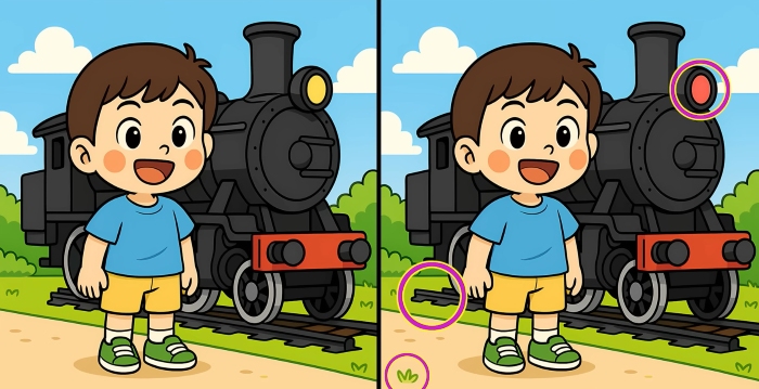 Czy jesteś gotowy na kolejne wyzwanie? Przyjrzyj się uważnie dwóm zdjęciom chłopca stojącego obok pociągu parowego. Na pierwszy rzut oka mogą wyglądać identycznie, ale są między nimi 3 małe różnice. Myślisz, że uda Ci się je znaleźć w 29 sekund? Spróbuj i sprawdź swoją ostrość widzenia!