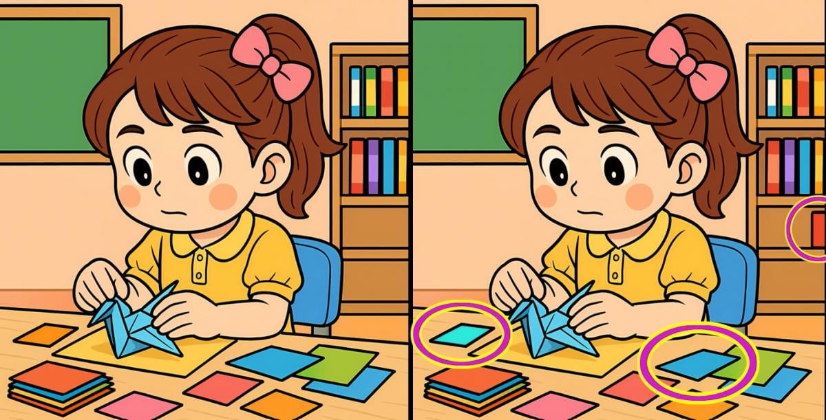 Czy jesteś gotowy na kolejne wyzwanie? Przyjrzyj się uważnie dwóm zdjęciom dziewczynki robiącej papierowe ptaki. Na pierwszy rzut oka mogą wyglądać tak samo, ale istnieją 3 małe różnice. Myślisz, że jesteś w stanie znaleźć je wszystkie w 19 sekund? Spróbuj i sprawdź swoją ostrość widzenia!