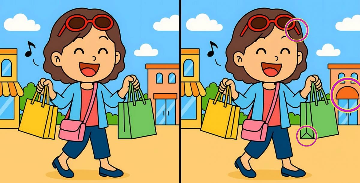 Czy jesteś gotowy na kolejne wyzwanie? Przyjrzyj się uważnie dwóm zdjęciom dziewczyny z torbami na zakupy. Na pierwszy rzut oka mogą wyglądać identycznie, ale istnieją 3 małe różnice. Myślisz, że jesteś w stanie znaleźć je wszystkie w 71 sekund? Spróbuj i sprawdź swoją ostrość widzenia!