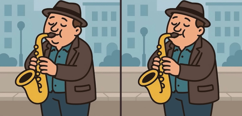 Czy jesteś gotowy na kolejne wyzwanie? Przyjrzyj się uważnie dwóm zdjęciom mężczyzny grającego na saksofonie. Na pierwszy rzut oka mogą wyglądać identycznie, ale istnieją 3 małe różnice. Myślisz, że znajdziesz je wszystkie w 31 sekund? Spróbuj i sprawdź swoją ostrość widzenia!