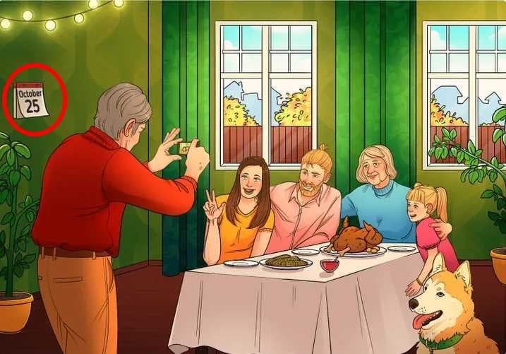 Błąd polega na tym, że data w kalendarzu to 25 października, a Święto Dziękczynienia wypada w listopadzie.