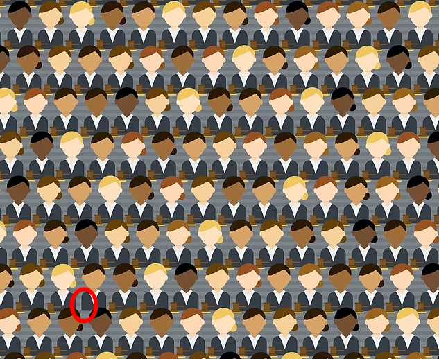 Na obrazku znajduje się wielu sędziów. Wszyscy z nich mają młotek sędziowski. Naszym zadaniem jest znalezienie sędziego, który nie ma młotka.